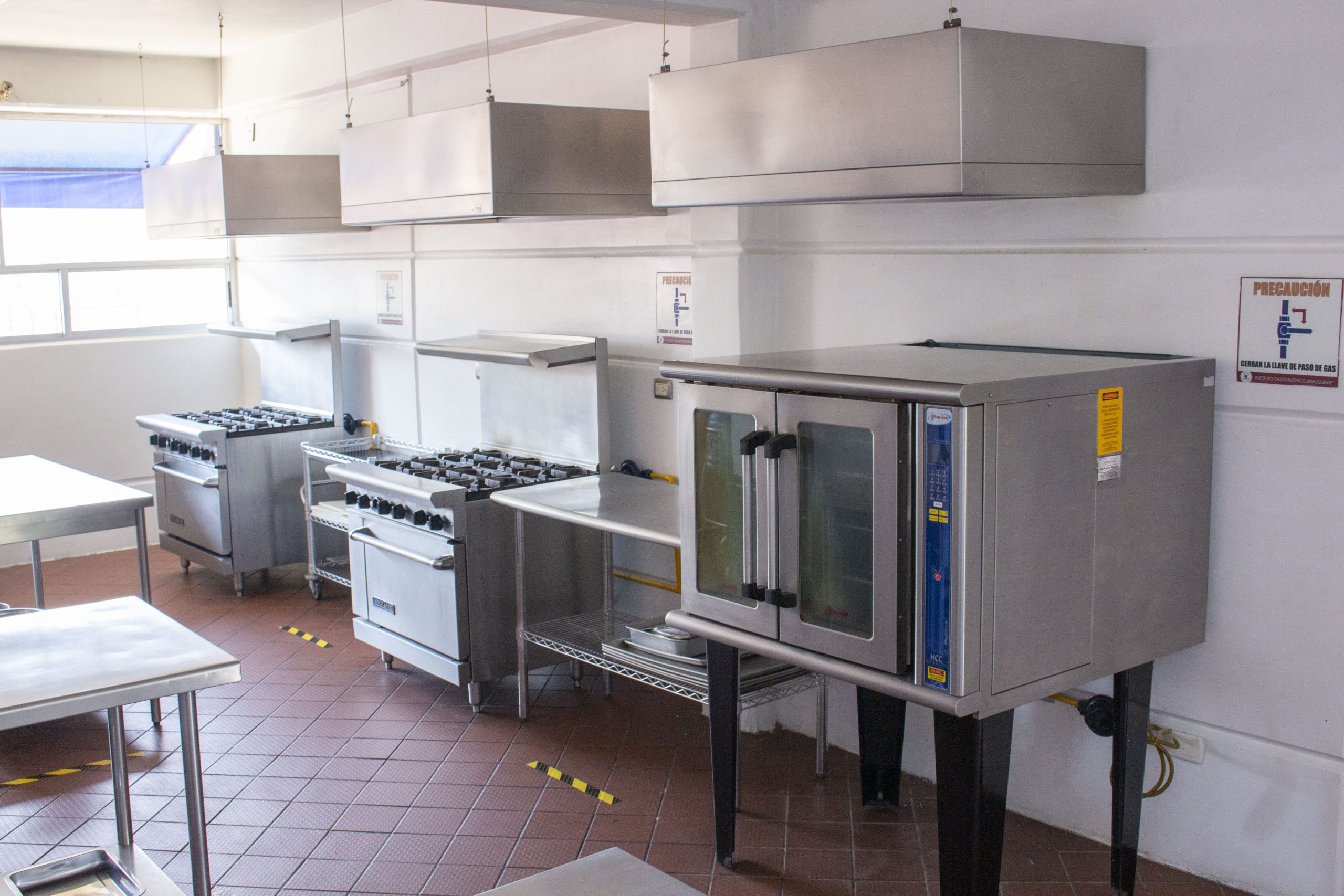 - Laboratorios de Cocina Nacional e Internacional, construidos con materiales de alta calidad, como aditivos antibacteriales y piso antiderrapante Stone Rouge. Cada laboratorio está completamente equipado con estufas, hornos, vitrinas refrigeradas, batidoras, equipo de cocina profesional (mayor y menor), trampas de grasa y horno de convección.